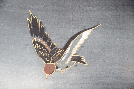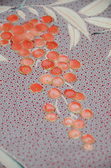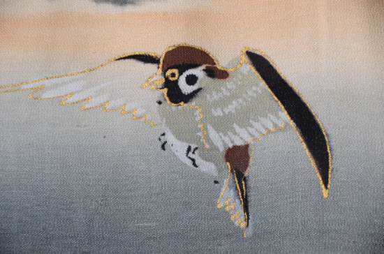 雀の柄は刷り込みですが金線が糸目で施されていて、アクセントになっています。