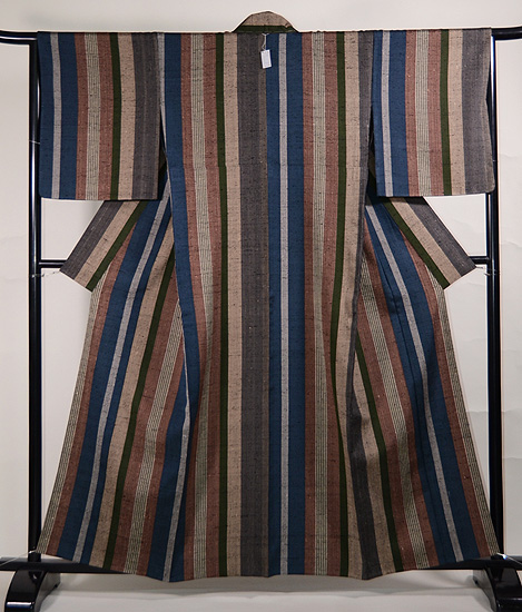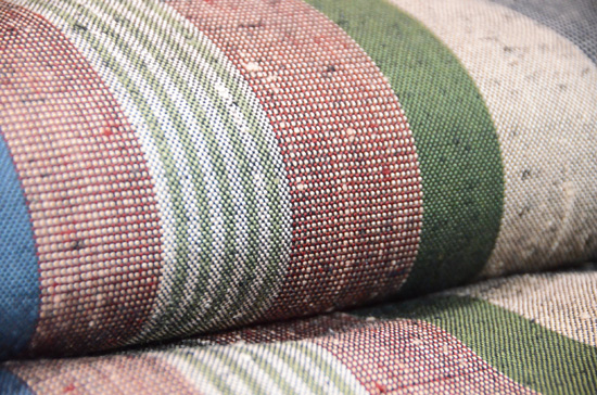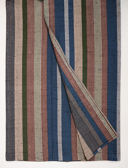 太い玉糸を打ち込んで織り上げる伊兵衛織に、ざっくり太い縞が気持ち良いほどよく似合います。