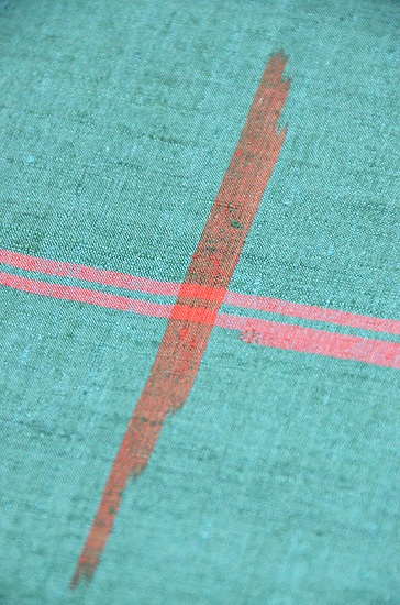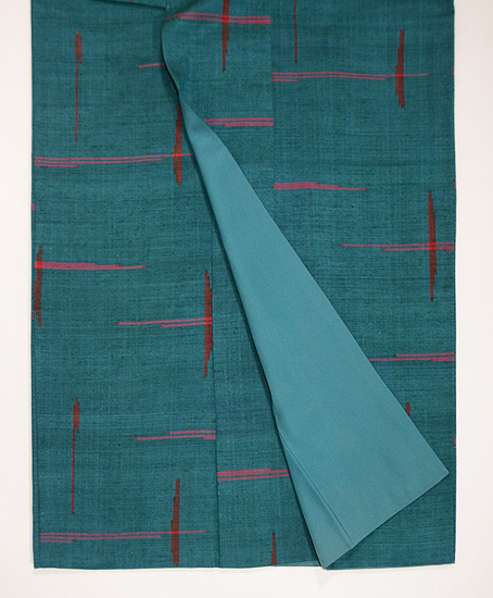 大きな十字の絣と綺麗なビリジアングリーンが目を引きます。