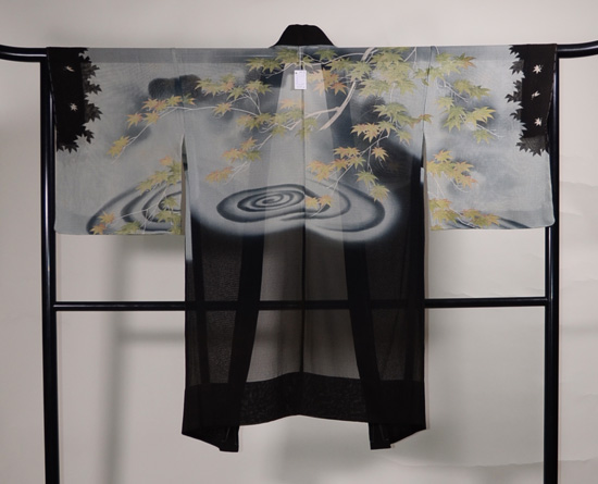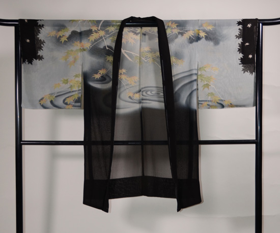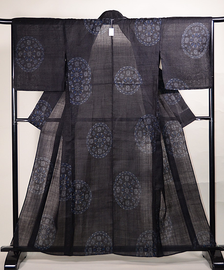 経年変化で、黒の地色もほどほどに優しくなって、地紋の透け感が爽やかです。