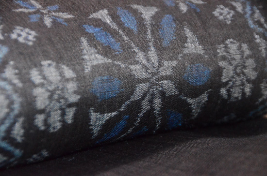 菱文様を構成する、細かな絣の仕事をご覧ください!
