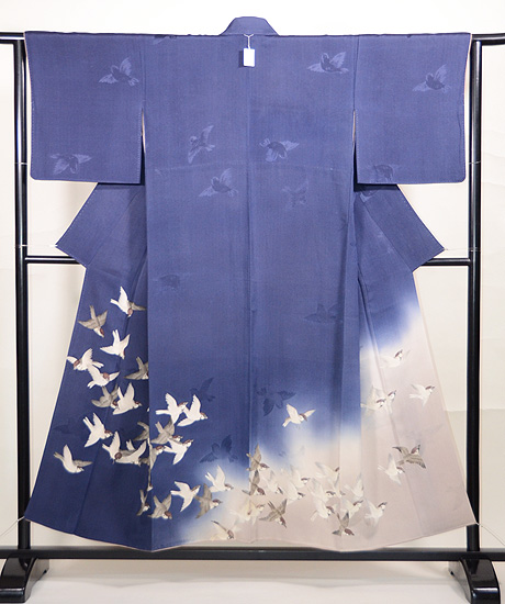 夕闇迫る空気の色に、どこか別の世界に誘われてしまいそう…妖しい魅力ある小紋です。