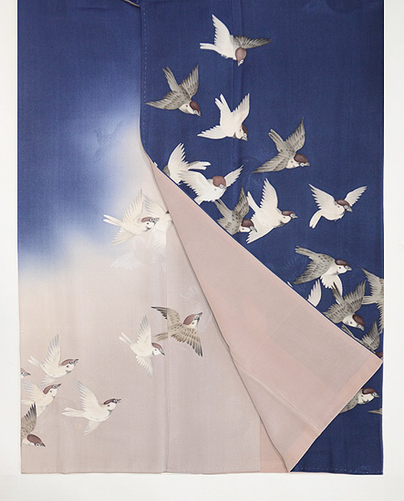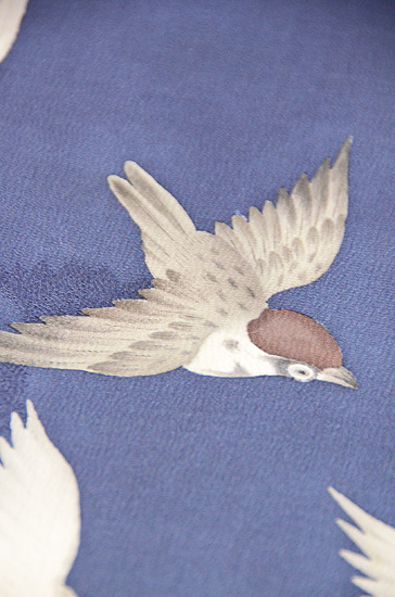 この着物をお作りになった方は、どれ程雀がお好きだったのでしょう!地紋も雀です。