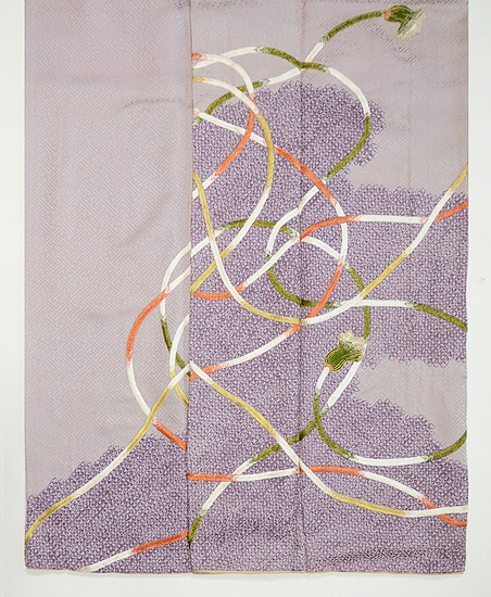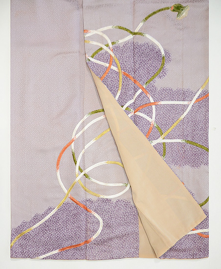 綸子地に絞りの雲取りが施された凝った仕立て。