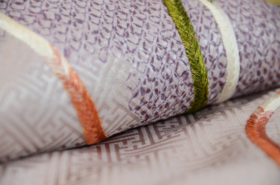 丁寧に刺された組紐の刺繍はぽってりと厚みがあり、高級感をたたえています。