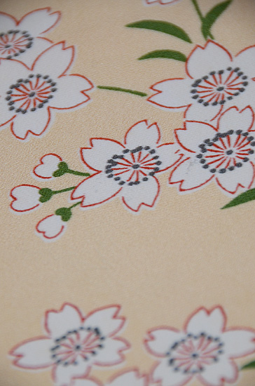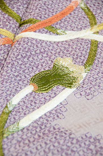 さらに地紋をなぞるようにチューリップを染め上げ、ヨーロッパのタイルを思わせるモダンな柄付けを施しています。