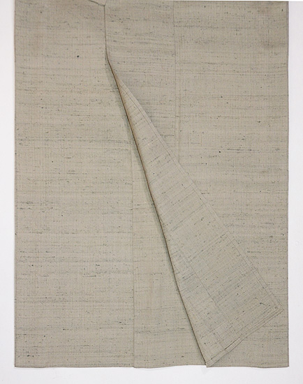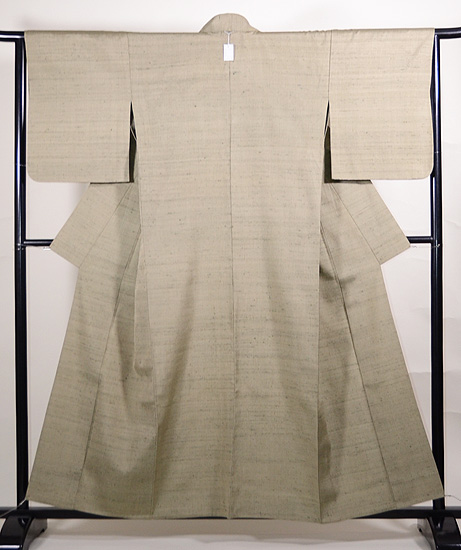 よもぎ色の濃淡の太い玉糸が織り込まれた、春先にお召し頂きたい単衣紬です。