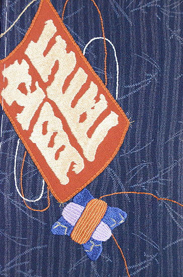 衽に凧と糸巻きの刺繍を刺して、八掛の色と共に、少し粋な風情を出してみました。