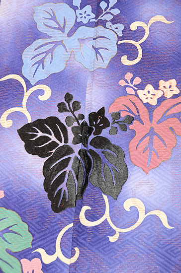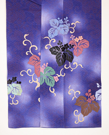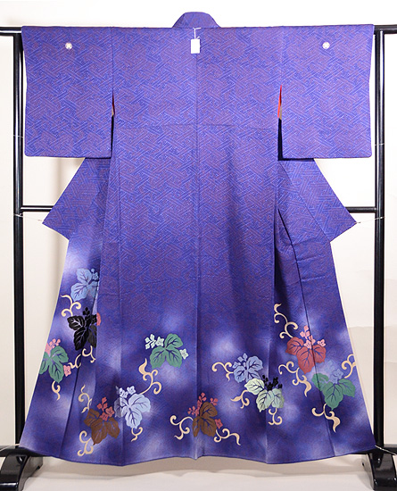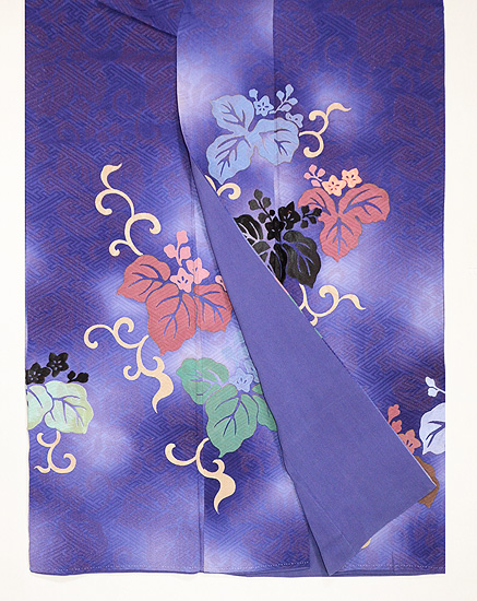 青紫を基調に、新鮮な色味が目に印象的なお着物です。