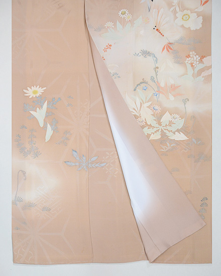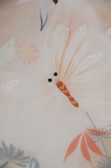 有職文の上から麻の葉文様が重なって、清楚でエレガントな趣が見えます。