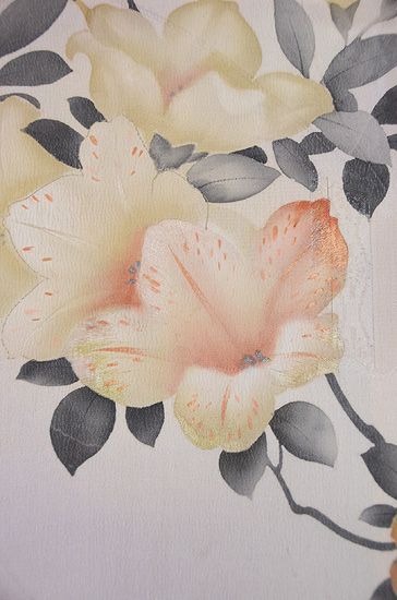 お花はムクゲのようにも見えますが、春のお着物としてツツジということにしました。