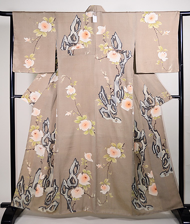生命を咲ききった古木と、今まさに謳歌している薔薇との対比が面白く、お召しになる方のお気持ちが揺さぶられます。