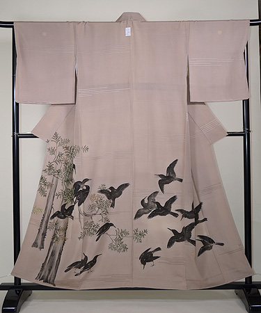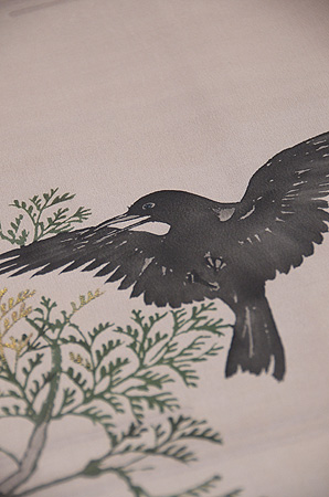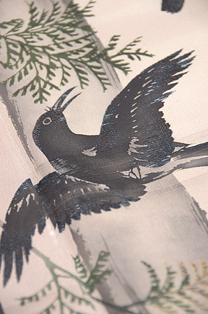 地紋も木々に雀なので、呼応しあって結構楽しそうなお着物になっています。