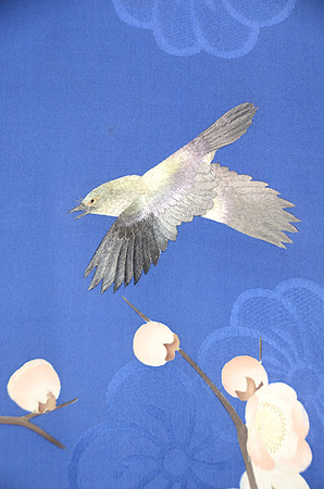 綺麗な藍の地に白抜きの笹が天まで伸びて、瑞鳥が群れ飛んでいる、天国という国があるとしたらこんなでしょうか。