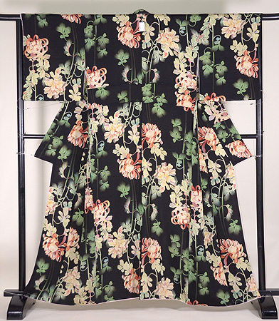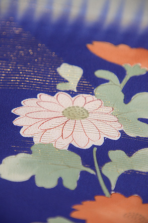 華やかな大輪の菊が目を引く、アンティークの小紋です。