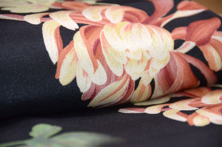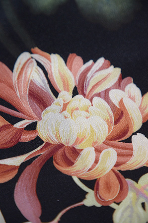 黒地に菊の花と葉だけを配した潔いデザインが見事です