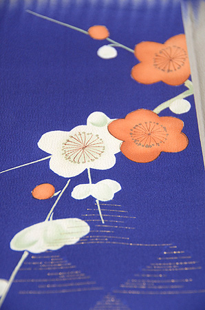 裾模様には、丸く愛らしい梅が蕾をほころばせ、大輪の菊が咲き誇っています。