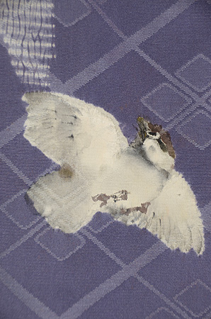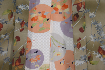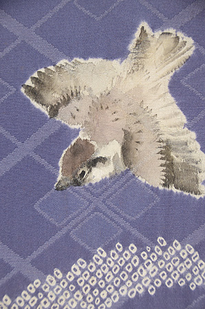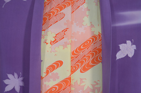 紫、白、ブルーグレーだけのすっきりとした柄付けと色合いなので、柄の多い小紋などにも合わせやすそうです。