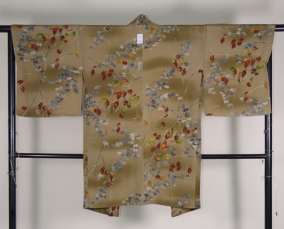背から前に美しくつながった柄か紅葉の美しい情景を感じさせる羽織です。