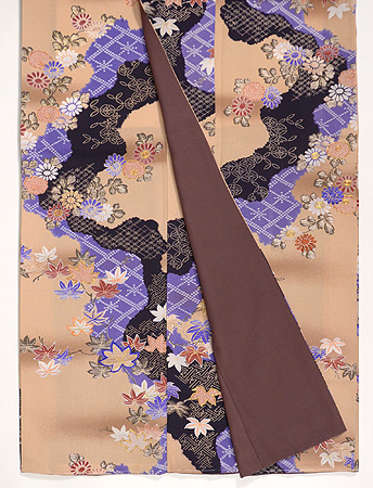 朽葉色の暈しに宝ずくし文で、道長文様が走っています。