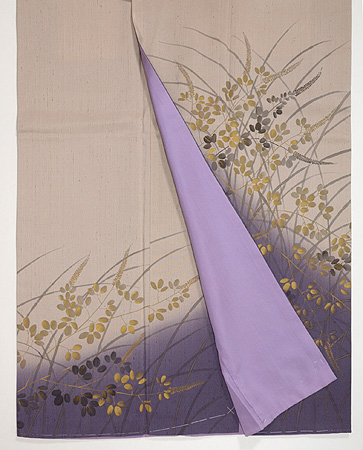 江戸時代流行した紫地色に摺り疋田された菊の葉小紋染。