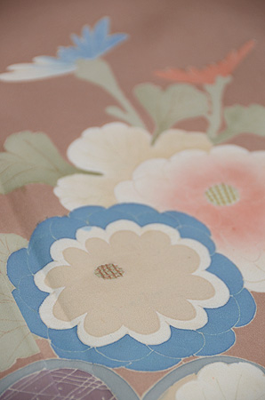 春のお花ですが、地色を濃い目のお色にして、春以外に季節もお召しになれるようオーダーしたのかもしれませんね。