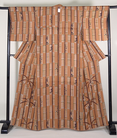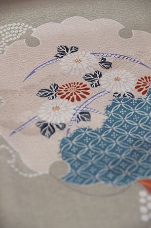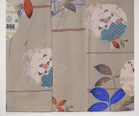優しい色合いの、ゆったりと大きな図柄が秋の季節にふさわしいお着物です。