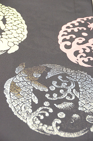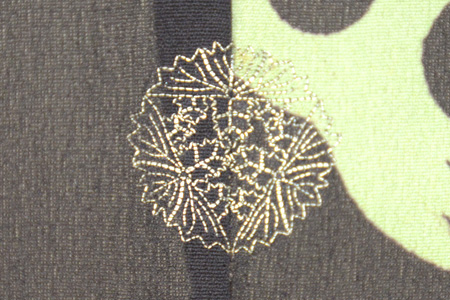 黒字に梅鼠と薄青、それに金銀の丸紋がちょっと賑やかに配され、まさに大人かわいいの真髄を感じずにはいられません。
