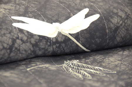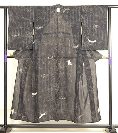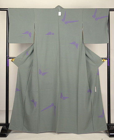 すっきりとしたデザインですが、蝶のモチーフが優美に舞う、印象的で独特の雰囲気があるきものです。