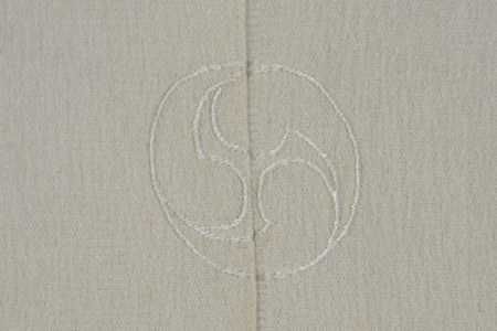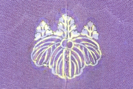 麻の葉模様の透かしが入り、6枚結び桜の染め3つ紋です。