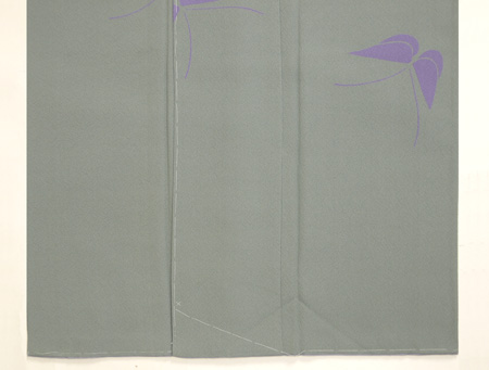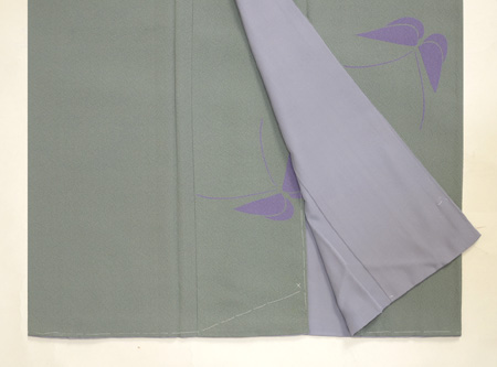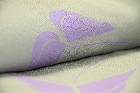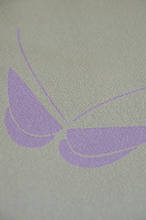 グリーングレーのような微妙な地色に、紫の蝶々。