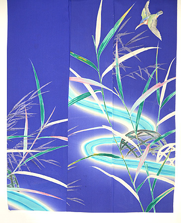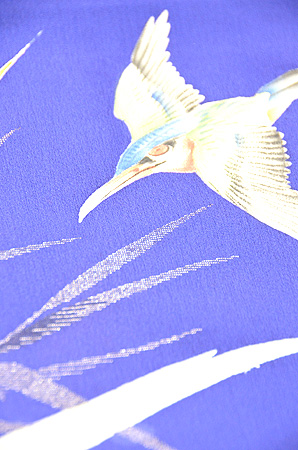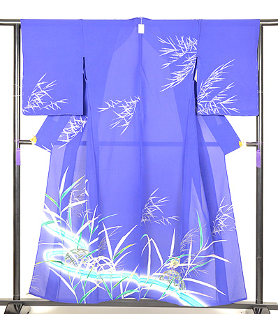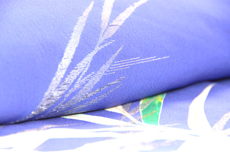 青紫の錦紗に葦が銀糸で織り出され、明らかに昭和初期の着物です。