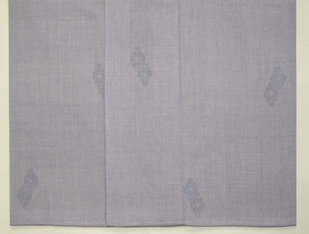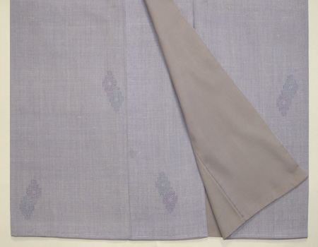 薄色に藍と江戸紫の80亀甲で、重ね菱型が織り出されています。