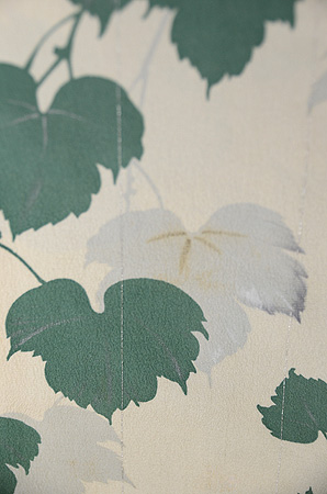 青緑の淡い地色に濃い蔦の葉が茂っています。