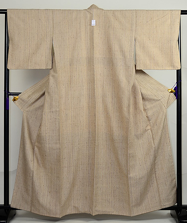 縦横に走る糸のつなぎと、生紬のしなやかさが美しい着物です。