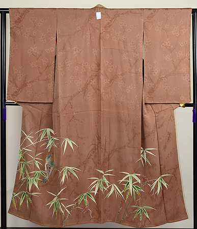 茶の色が深く豊かで、紬糸の美しさが堪能できるお召し物です。
