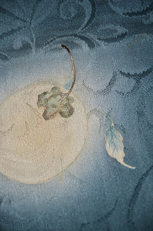八つ手文様には所々銀泥で葉脈が描き込まれ、アクセントになっています。