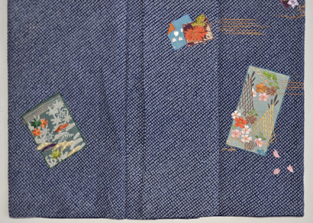 袖と胸元には、お土産のつづらを連想させる宝尽くしの文様が描かれています。