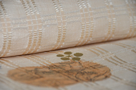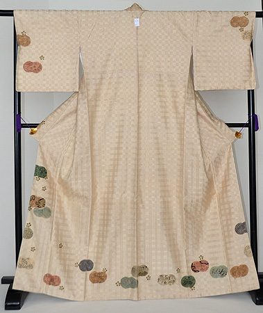 間道に織り出された正絹地に上品な光沢感が美しい、何とも雅な衣裳です。