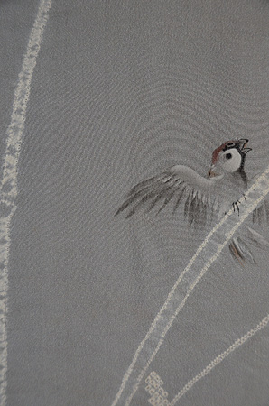 昔話、舌切り雀のお話が描かれた付下です。
