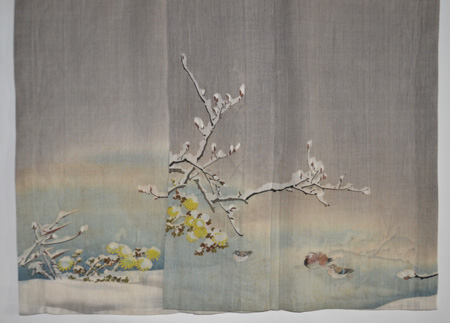 夏の着物に寒中の図を置いて涼気を呼ぶ着物は、明治時代にはやったものです。