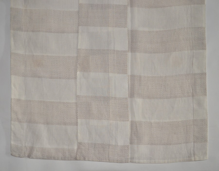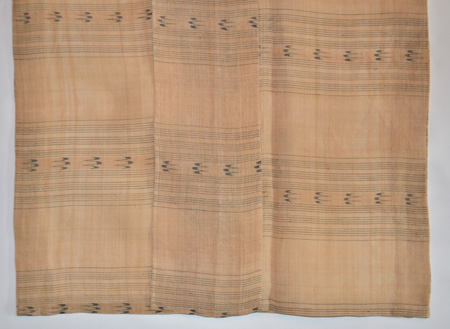7cm幅の緯縞で、茶の小さな十字絣が織り込まれています。