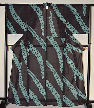藤の文様がすっきりと大胆に表わされ、着こなしによっては粋にも洒脱にもお召しいただけます。