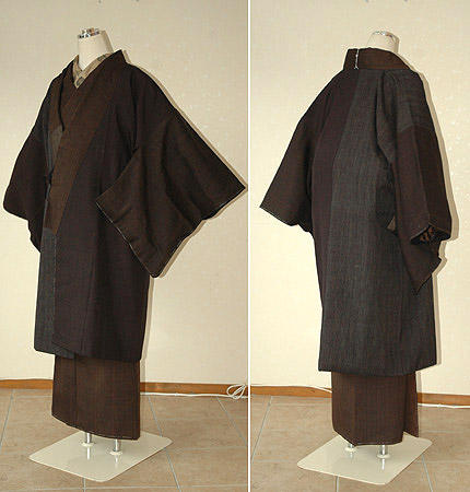 2着の結城紬を組み合わせ片身変わりとして仕立てました。