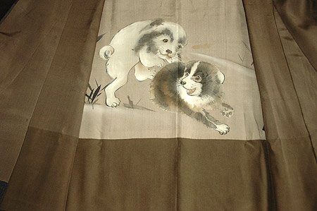 じゃれあう2匹の子犬柄の羽裏を、使っています。