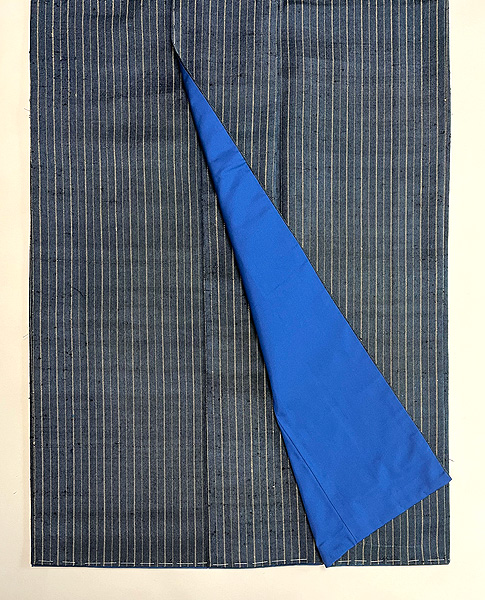 撚りのない太い平糸で、織りの違いによって、縦縞を織り出している、という高度な技術に裏付けられた織物です。