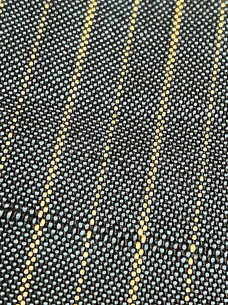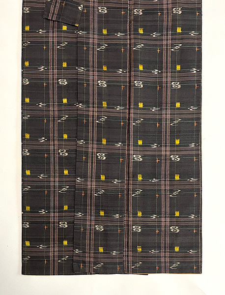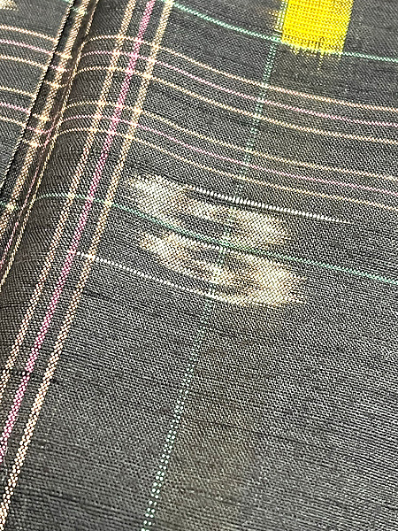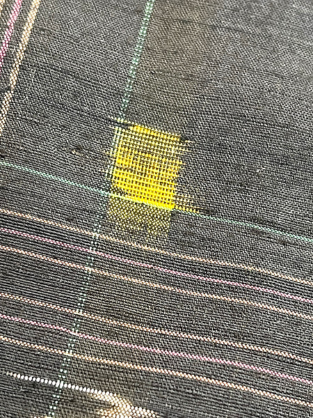 それに辛子色の縦縞が、糸1本と2本とで織り込まれています。