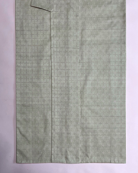 紋意匠の地紋で大きな木目を出していて、ひとつ前の時代のかしわの抜き紋と共に、高い格調漂うお出かけ着となっています。
