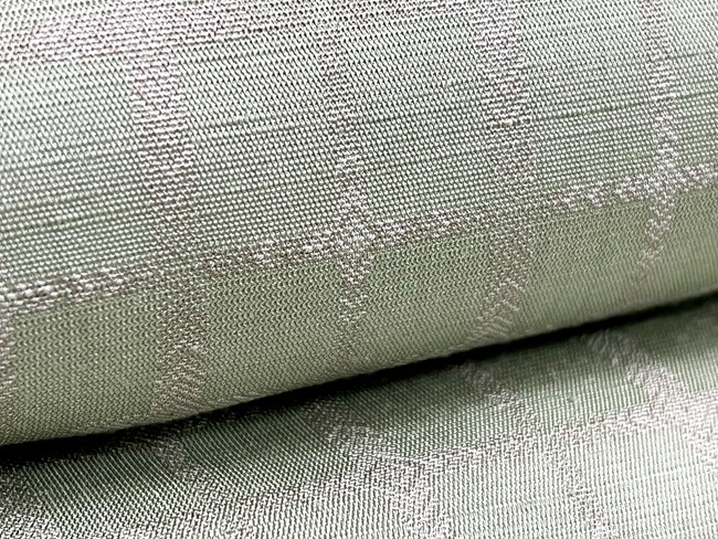 グレーの色糸で格子文様を織り出しているのが、銀糸が古色を帯びたように高い格調を生んでいます。