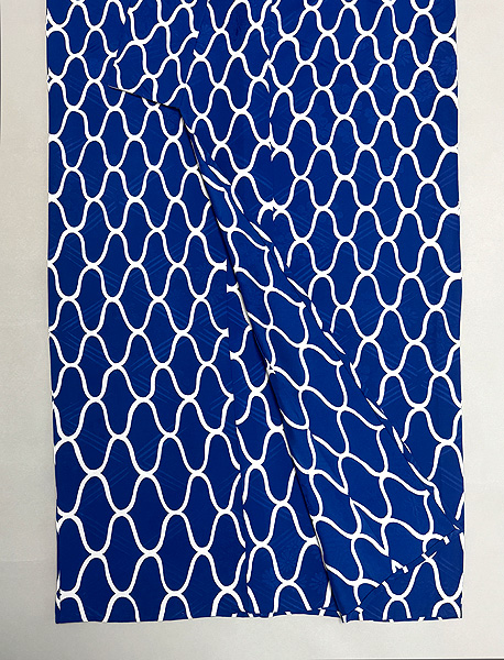 鮮やかな瑠璃色に白地で大きな網目文様を描いた小紋。
